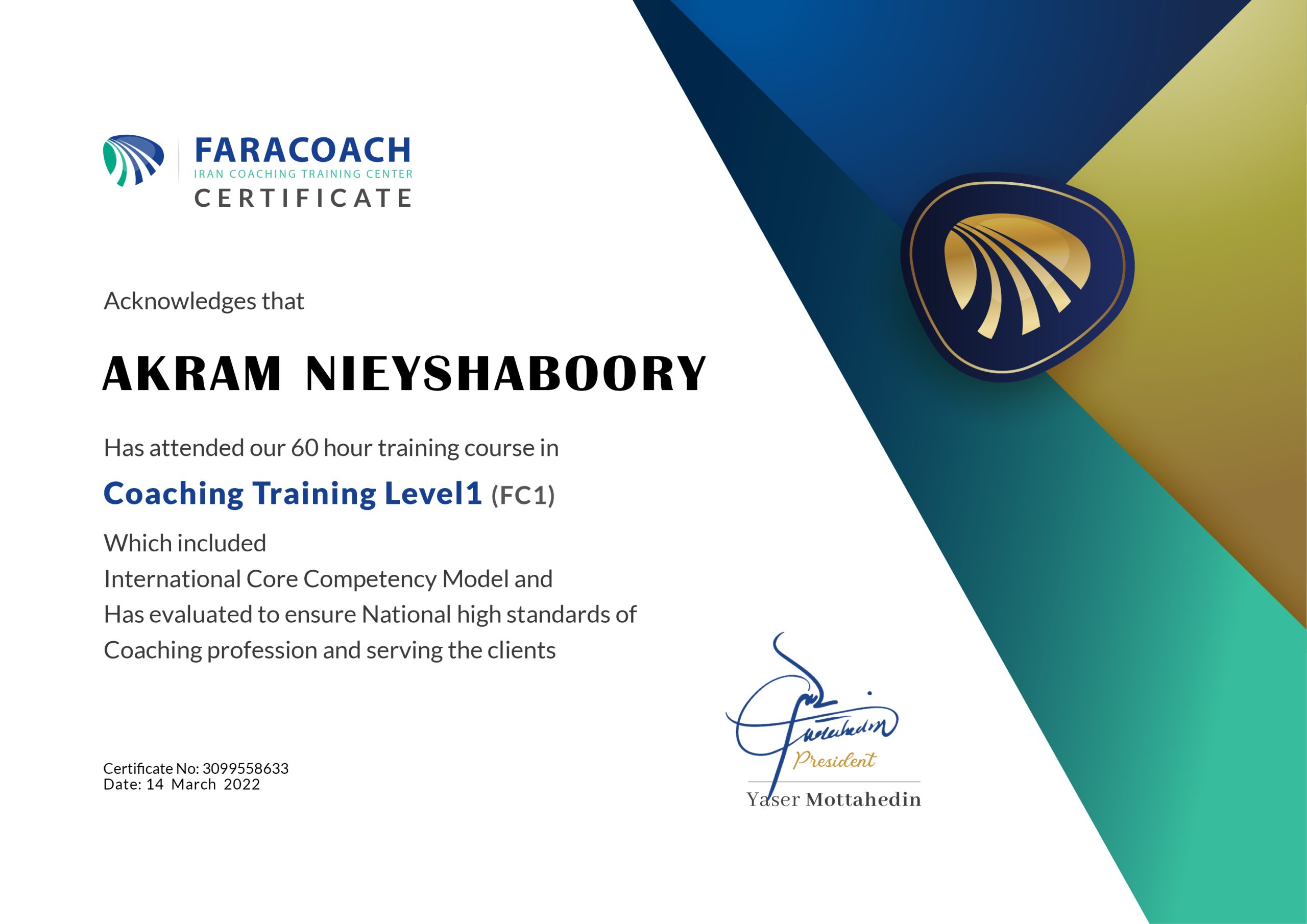 کوچ سطح 1 و 2 icf از آکادمی فراکوچ و فنی و حرفه ای