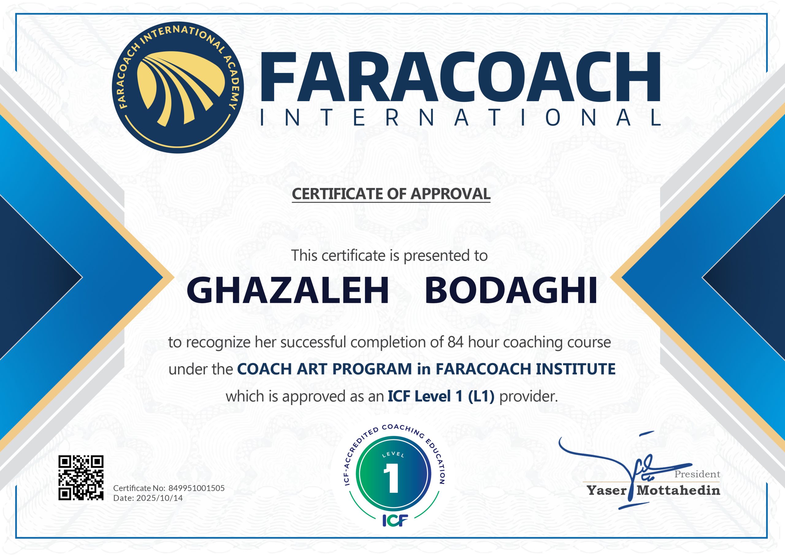 • کوچ سطح یک دارای مدرک مورد ICF