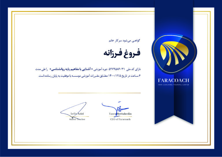 کوچ معتبر سطح دو دارای مدرک مورد تایید icf از آکادمی بین المللی فراکوچ دکترای مدیریت کسب و کار (DBA) کارشناسی ارشد مدیریت اجرایی (MBA) دانش آموخته 15 آیتم روان درمانگری از دانشگاه جهاد علامه طباطبایی (دپارتمان انسان) لیسانس حقوق مربی بین المللی فلسفه برای کودک و نوجوان دانش اموخته دوره سوپرویژن دانش آموخته دوره ی تئوری انتخاب در آکادمی فراکوچ دانش آموخته دوره های ارتباط بدون خشونت