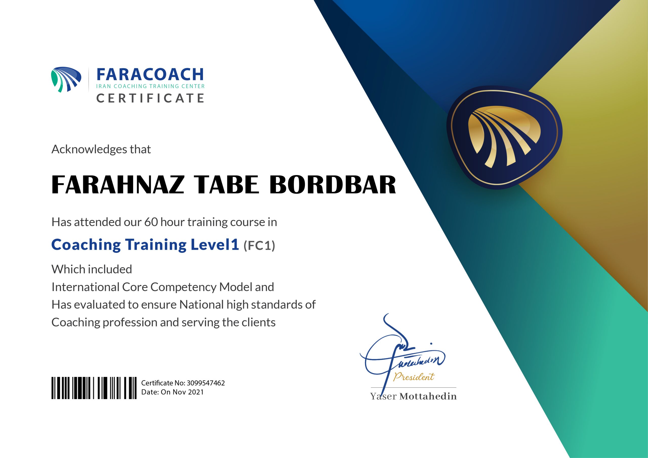 • فارغ التحصیل سطح  یک کوچینگ دارای مدرک مورد تایید ICF
