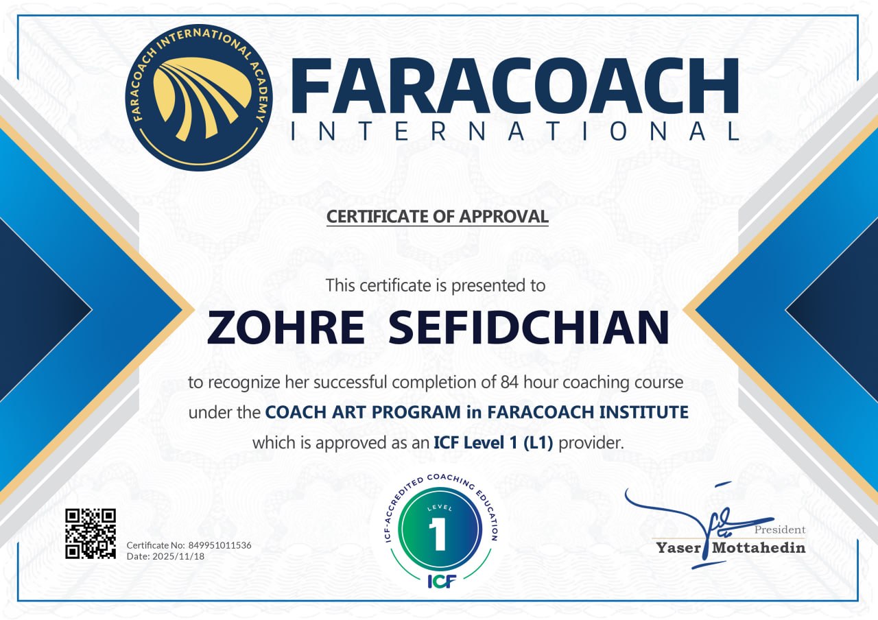 • کوچ سطح ۱ مورد تایید فدراسیون بین المللی کوچینگ